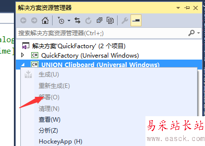 2、另外,在解決方案資源管理器中,在當前項目上右鍵,也能看到生成部署等操作。