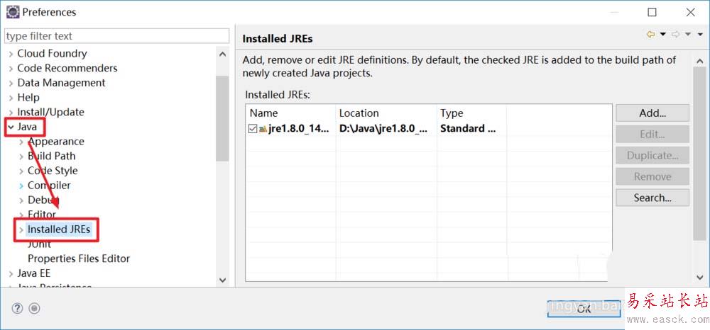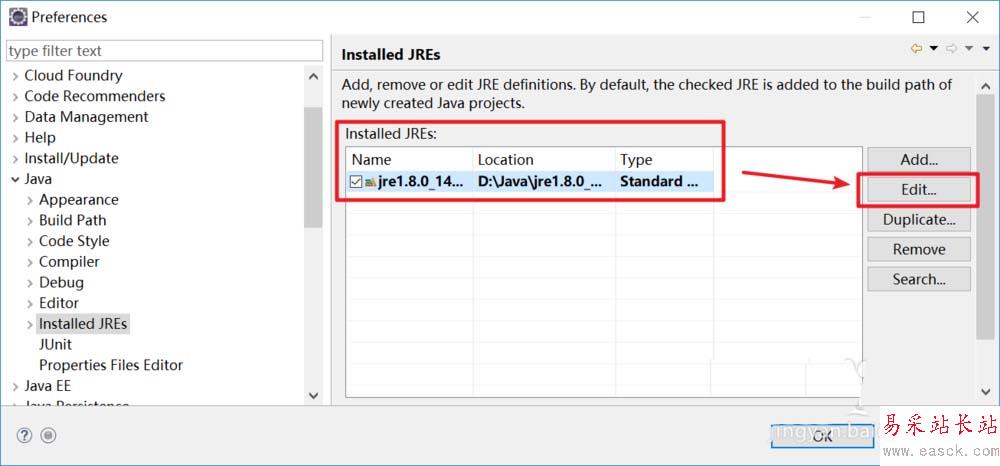 4、選中安裝的JRE環(huán)境,點擊【Edit】