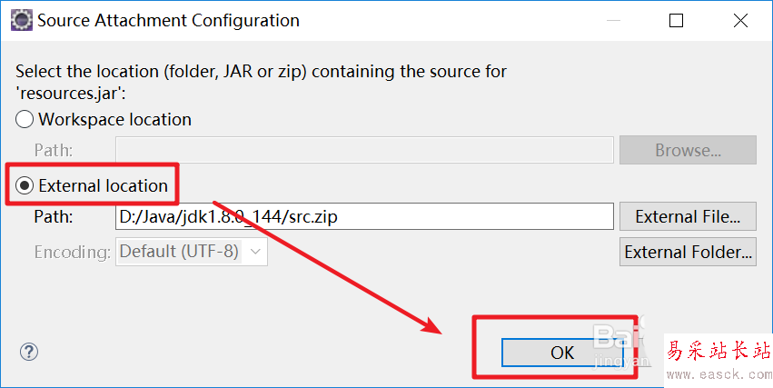 6、點擊選擇【External Location】,選擇源碼的位置,點擊【OK】