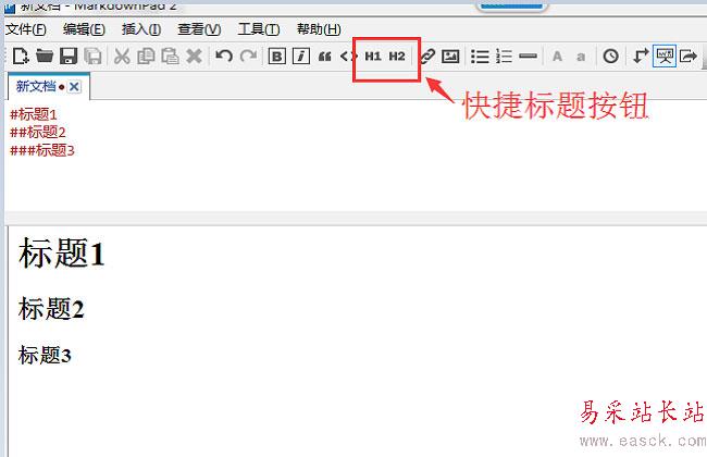 #代表1號標(biāo)題,##代表2號標(biāo)題,###代表3號標(biāo)題,依次類推,必須頂格寫才有效。也可以通過點(diǎn)擊工具欄中的標(biāo)題圖標(biāo)快速獲取。