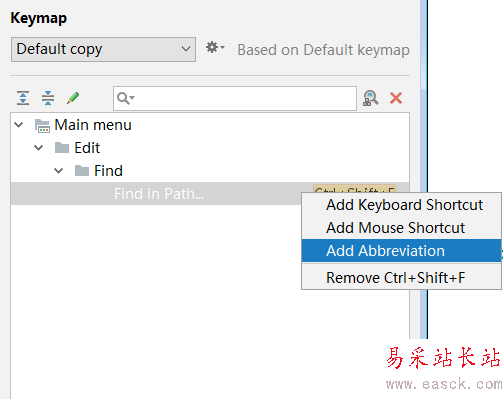 5、雙擊搜索結果的一行,可以設置快捷鍵。第一行是新增快捷鍵,第二行是新增鼠標快捷鍵,第三行是新增簡稱,在雙shift搜索中用到,第四行是移除已有快捷鍵等。