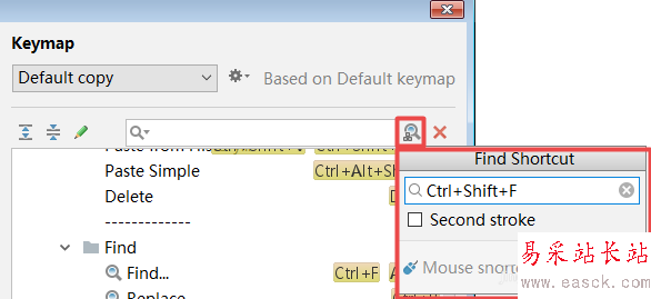 3、右邊的小放大鏡點擊后打開的小窗可以按按鍵組合搜索,比如按下ctrl+shift+f,可以搜索ctrl+shift+f是什么功能