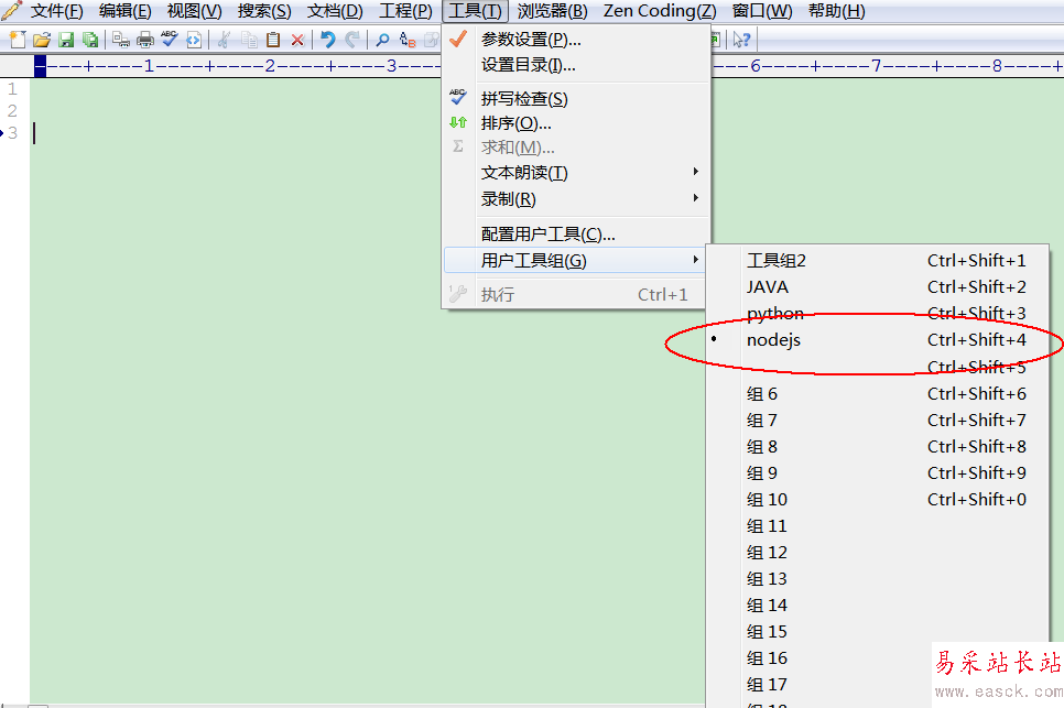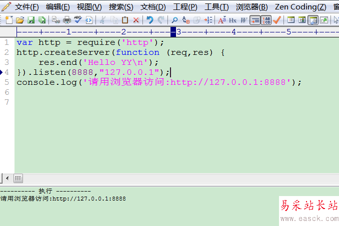 用editplus快速編寫并執(zhí)行nodejs代碼的方法步驟: