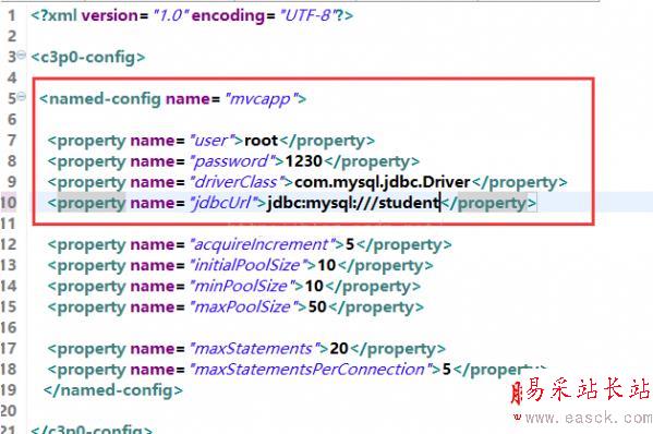 5、修改連接數(shù)據(jù)庫(kù)配置文件,其路徑在/src/c3p0-config.xml