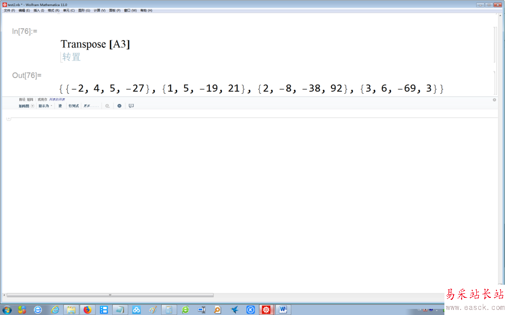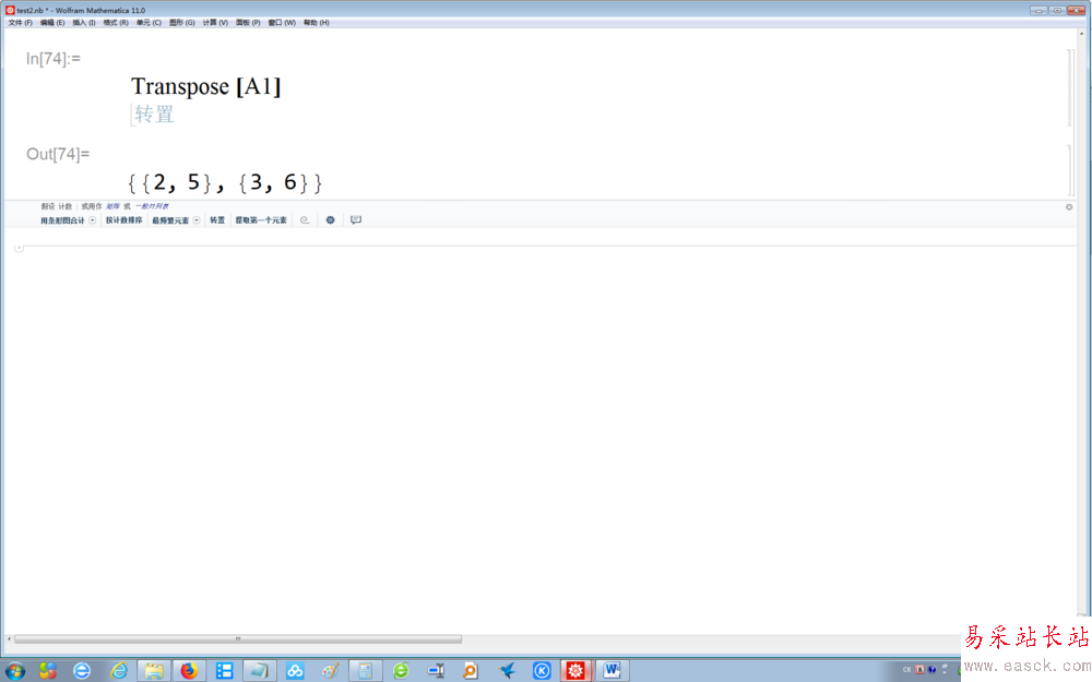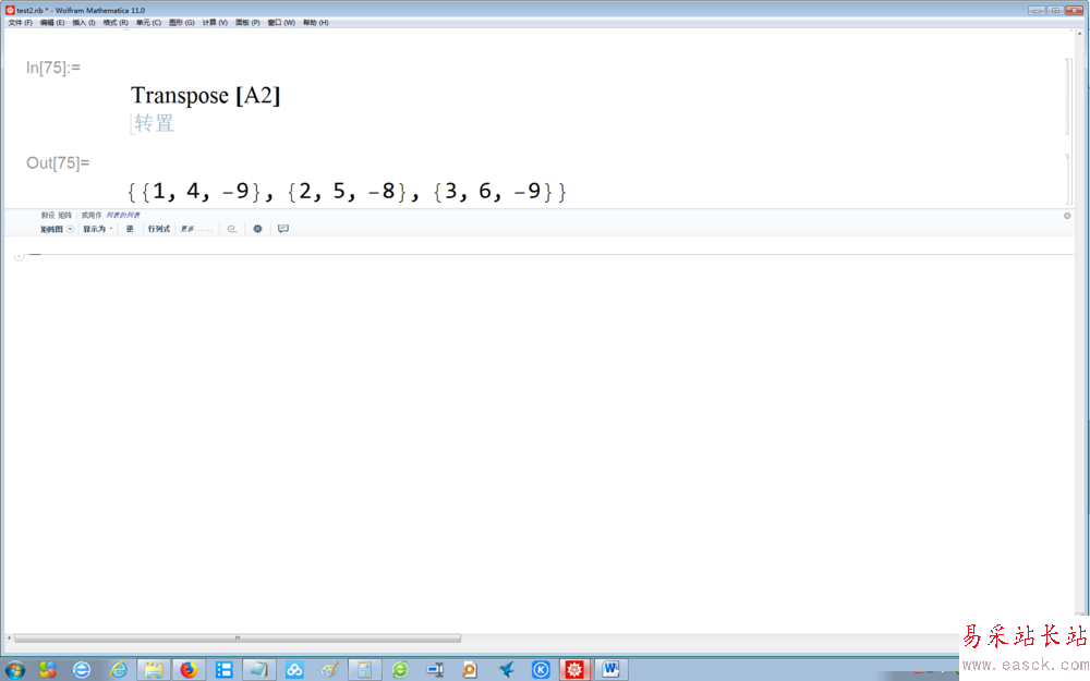 4、求解3階矩陣的轉置矩陣:在Mathematica的命令行中,輸入 Transpose [A2],然后按Enter+Shift