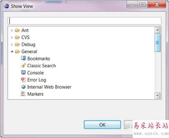 2、點擊 "Other" 菜單選項會彈出一個 "Show View" 對話框,對話框中你可以查找和激活視圖,如下圖所示: