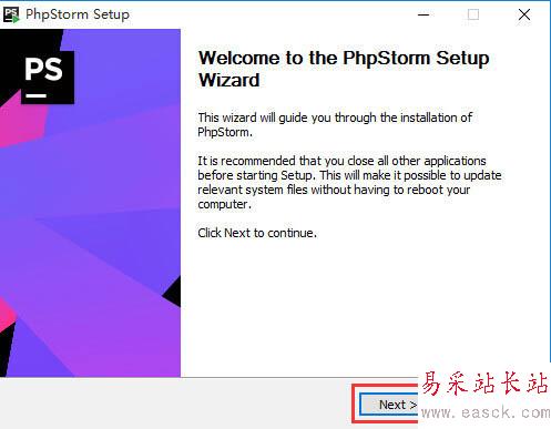 6、雙擊PhpStorm安裝包,進入歡迎安裝界面,然后點擊“Next”按鈕繼續安裝,如下圖所示。