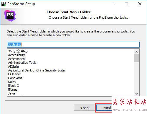 9、進入到“選擇菜單文件夾”,一般默認即可,然后點擊“Install”按鈕,如下圖所示。