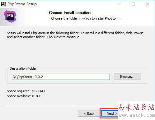 7、進入到“選擇安裝目錄”界面,選擇安裝的目錄,然后點擊“Next”按鈕,繼續安裝,如下圖所示。