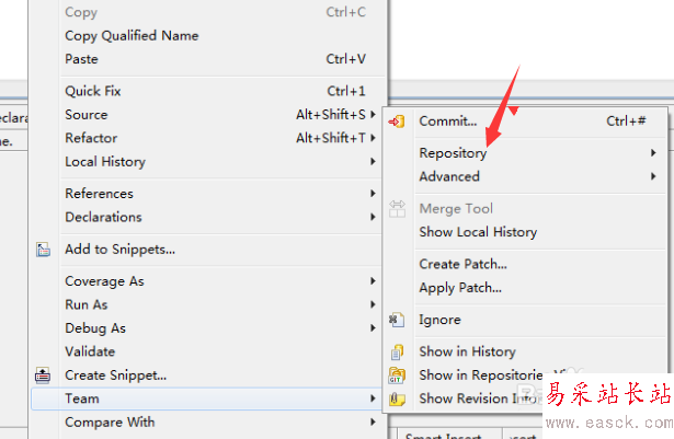 3、選中了team的選項之后,進行選擇為repository的選項菜單。