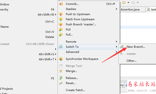 4、選擇了switch to的選項,在下一級菜單進行選擇為new branch的選項。