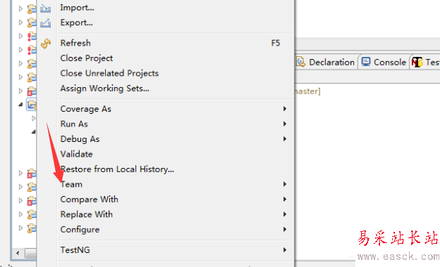 2、進行右鍵項目后,彈出了下拉菜單中進行選擇為“team”的選項