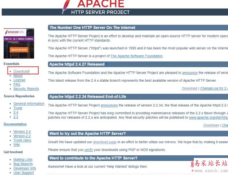 Apache是世界使用排名第一的Web服務器軟件。它可以運行在幾乎所有廣泛使用的計算機平臺上,由于其跨平臺和安全性被廣泛使用,是最流行的Web服務器端軟件之一。因為 Apache官網是全英文的,而且下載比較麻煩,所以,這篇教程教錯新站長站的各位朋友如何從Apache官網下載安裝windows版apache服務器?當然,本站也提供Apache官方版免費下載,嫌麻煩的小伙伴可直接從本站下載哦!