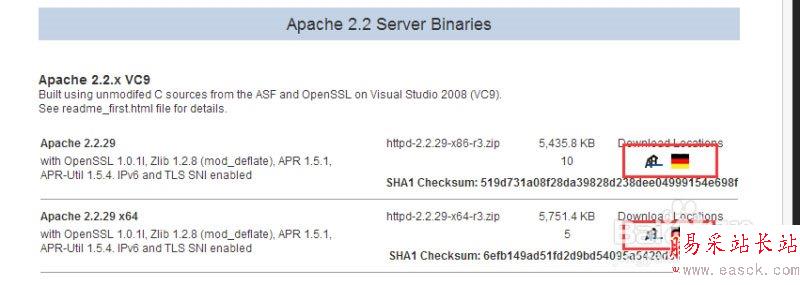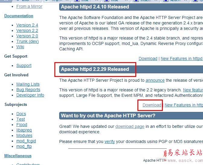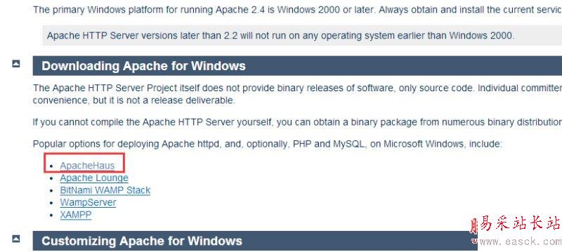 大致意思是說apache本身不提供已編譯的安裝包,只提供源碼,如果你自己無法編譯,可以選擇下面這些官方推薦的第三方提供編譯的網站。