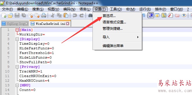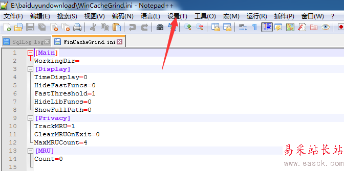 1、首先打開Notepad++文件,然后進(jìn)行點(diǎn)擊菜單中設(shè)置的選項(xiàng)。