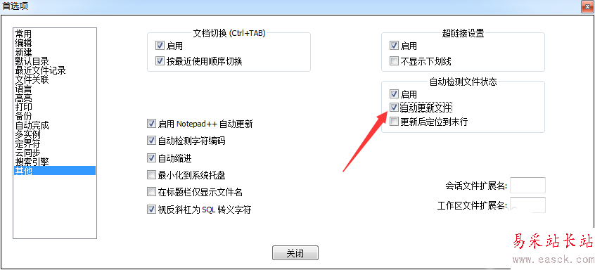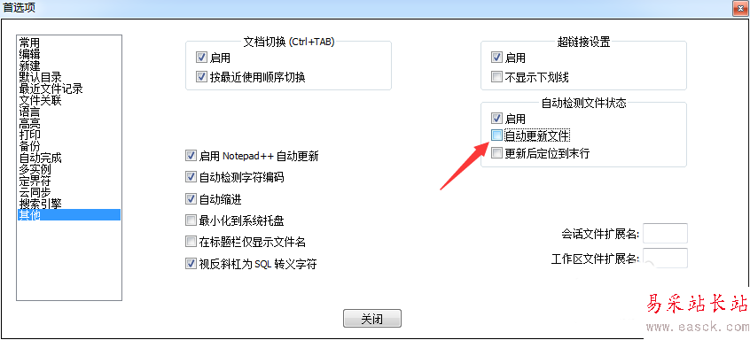 4、進(jìn)入到了其它選項(xiàng)界面中之后,在自動(dòng)檢測(cè)文件狀態(tài)中,進(jìn)行勾選上,自動(dòng)更新文件