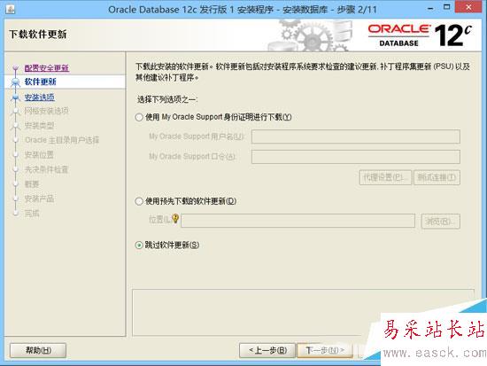 3、“配置安全更新”,取消“我希望通過My Oracle Support接受安全更新”,單擊“下一步”