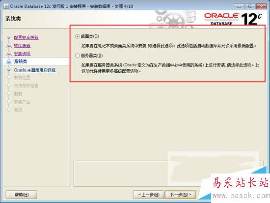6、根據介紹選擇”桌面類”還是”服務器類”,選擇”服務器類”可以進行高級的配置,這里選擇”桌面類”,單擊”下一步“