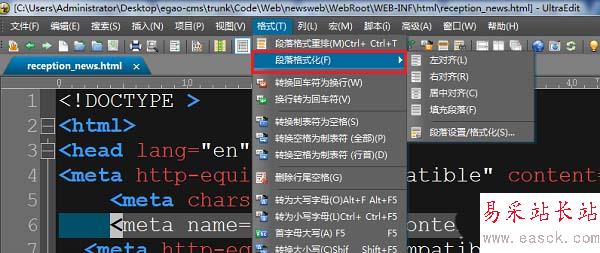 5、我們也可以對打開的頁面進行格式,點擊“格式->段落格式化”,如下圖所示: