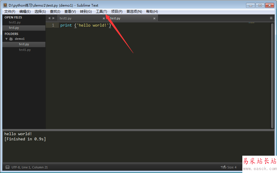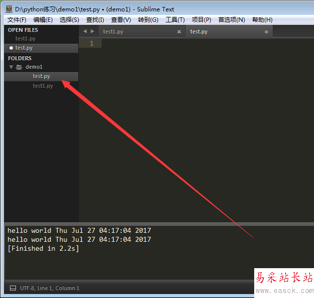 3、用sublime打開test.py