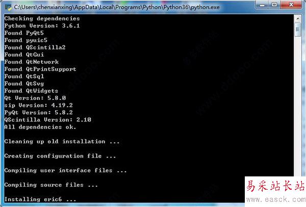 4.安裝完之后,打開python的安裝目錄(一般為“C:/Users/username/AppData/Local/Programs/Python/Python36/Scripts"),雙擊運行eric6.bat,就可以打開eric6了。
