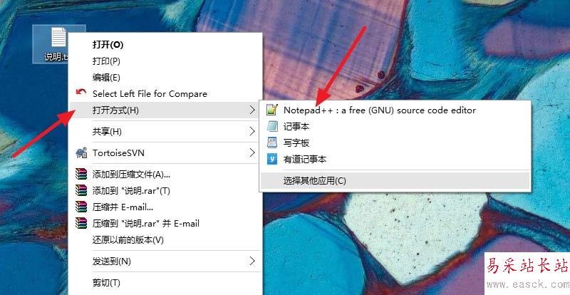 2、首先用notepad++打開文本文件。如圖,選擇一個文本文件后右鍵點擊,在出現(xiàn)的菜單中選擇打開方式為notepad++。