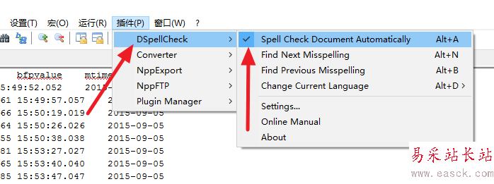 4、下拉菜單中有一個菜單項是DSpellCheck,這個菜單項的子項中有一項是Spell Check Document Automatically, 去掉該子項目前面的對勾,紅色的波浪線就會自從消失。