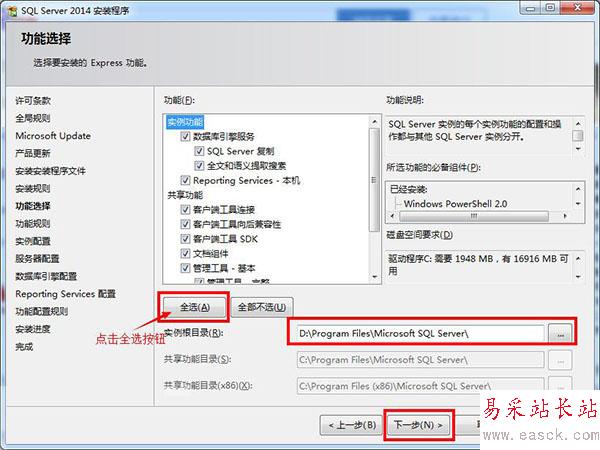 7、點擊全選按鈕,然后我們可以更換實例的根目錄,接著點擊下一步,如下圖所示。