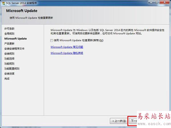 6、這里問我們是否使用"Microsoft Update"檢查重要更新,不用勾選,直接點擊下一步。