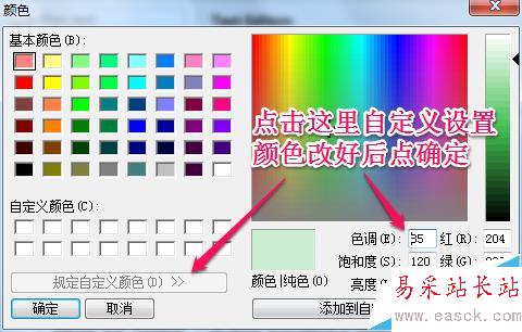 3、本例使用的背景色是喜大普奔的豆沙綠,比較柔和。設(shè)置為:色調(diào):85。飽和度:120。亮度:208 即可,據(jù)說長(zhǎng)時(shí)間使用可以緩解眼疲勞哦。