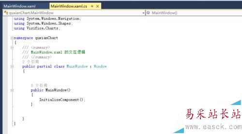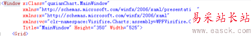 5、引用過來之后,我們記得要在xaml文件的頭部去引用這個chart庫,也就是說我們該通過什么途徑去找到這個chart。