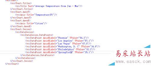 6、然后我們就可以直接引用這個chart庫去建立chart所需要的一些屬性,當然,如果沒有關了什么重要的東西,可以直接在前臺代碼直接完成,主要包括chart橫縱坐標集,標題,以及數據集。