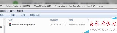 7、新加的模板默認(rèn)會在新增列表的根目錄下,如果需要讓她出現(xiàn)在web中,那先找到剛才“輸出位置”,然后把相關(guān)的template.zip 拷貝進(jìn)document中的Visual Studio 2010/Templates/ItemTemplates/Visual C#/web。