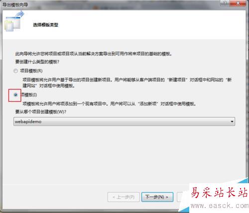 2、在模板向?qū)е羞x擇“項(xiàng)模板”
