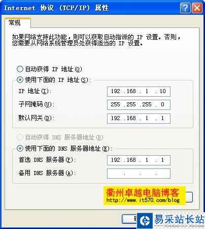 窗口中輸入IP地址:192.168.1.X (X在2-254之間都可)、網(wǎng)關(guān)填寫路由器的IP地址、DNS填當(dāng)?shù)氐木W(wǎng)絡(luò)運(yùn)營(yíng)商或填路由器IP也可以?,F(xiàn)在的路由器一般都默認(rèn)開(kāi)啟DHCP服務(wù),選擇自動(dòng)獲取也能的到IP地址。