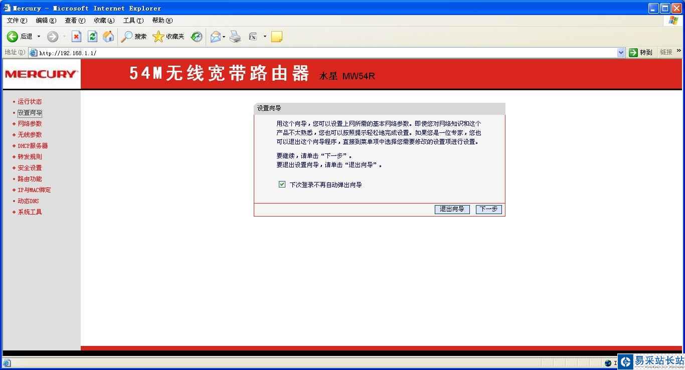 水星路由器管理界面,點擊左側的“設置向導”進行上網設置。