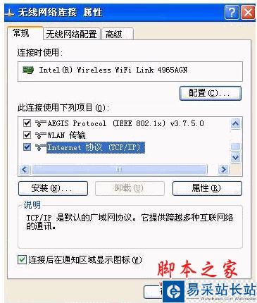 4)選擇無線網絡連接的“Internet 協議(TCP/IP)”,點擊“屬性”,將“IP地址”和“DNS”改為自動獲取。