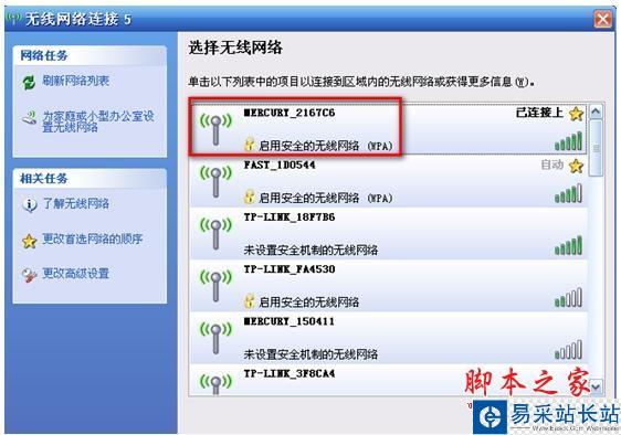 2)在“無線網絡連接”中查看無線網絡,觀察搜索到的無線網絡是否進行了加密設置。下圖為一個WPA加密的無線網絡。