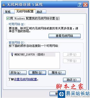 3)點擊“更改高級設置”,進入無線網絡連接“屬性”頁面,并在“首選網絡”中刪除不相關的無線網絡配置。
