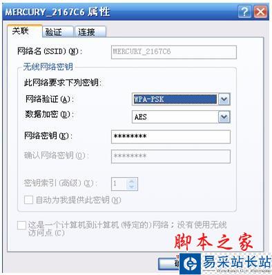 4)選擇您的無線網絡名稱,點擊“屬性”,在無線網絡密鑰中核對網絡驗證是否與路由器中加密方式一致。如果不一致,請先修改驗證方式,再重新輸入正確的網絡密鑰。