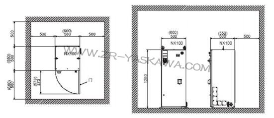 安裝NX100控制柜至少要距離墻壁500mm,以保持維護(hù)通道暢通。