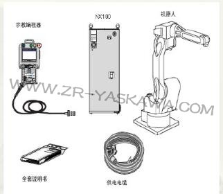 機(jī)器人、供電電纜、一次側(cè)電源電纜和示教編程器電纜的連接圖如下: