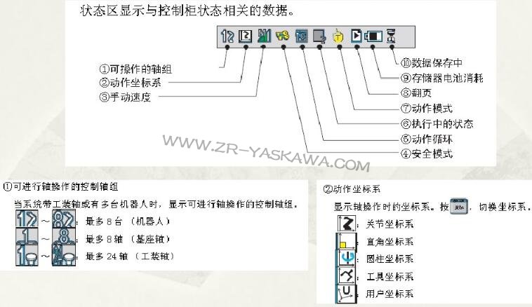 狀態(tài)區(qū)顯示與控制柜狀態(tài)相關(guān)的數(shù)據(jù)。