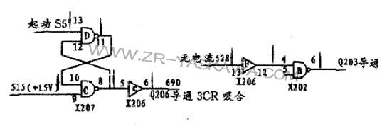S5→X207(D)13↓→X207(D)11↑→X207(C)8↓→X206(C)6↑(690#)固態(tài)繼電器3CR吸合,焊機(jī)遠(yuǎn)控起動(dòng)。因此時(shí)無(wú)焊接電流,
