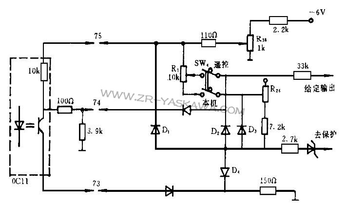 給定電路的主要作用是為主調節器提供一個可調的輸入信號。同時整定焊機的最大和最小輸出值。另外,由四個二極管組成的負邏輯或門電路將給定輸入電壓信號送到保護電路,當給定輸入因任一端斷線造成電位過低時,保護立即動作,將電源跳開,見圖3。