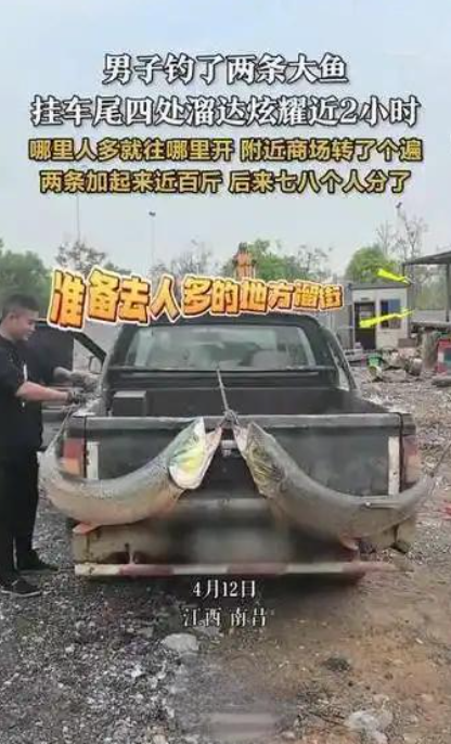 男子釣2條大鳡魚掛車尾到市區炫耀: