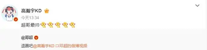 高瀚宇回應鄧超喊退圈:超哥最帥