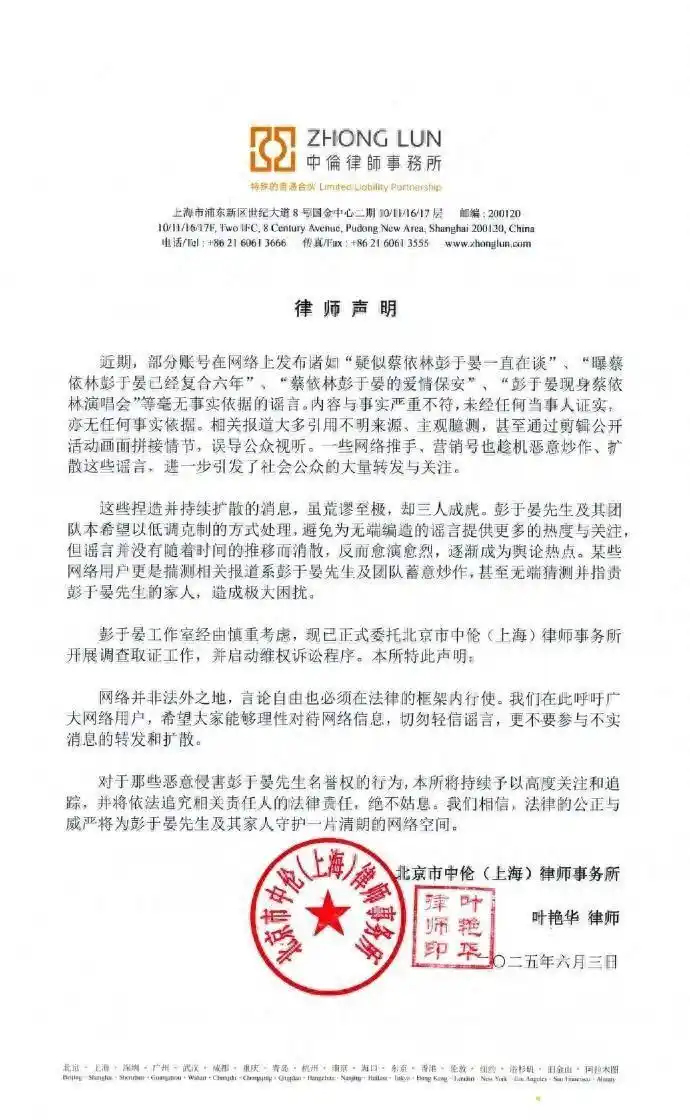彭于晏方發(fā)聲明!否認與蔡依林戀情