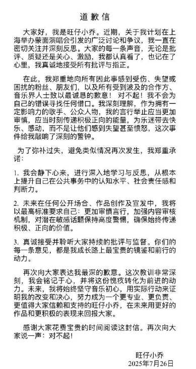 旺仔小喬掉粉已超300萬(wàn) 道歉信查重