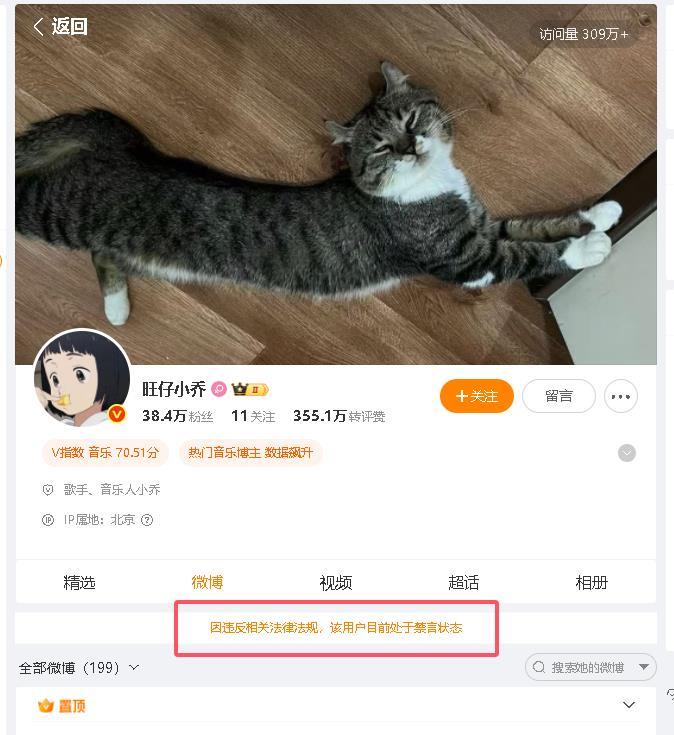 網(wǎng)紅“旺仔小喬”微博被禁言 負(fù)面